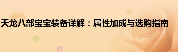 本文详细介绍了天龙八部宝宝装备的相关知识,包括属性加成、种类、获取途径、选购指南以及强化与升级等方面。希望能够帮助玩家更好地了解和选择宝宝装备,提升宝宝的战斗力。