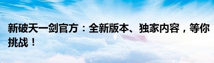 欢迎来到新破天一剑官方!我们非常高兴地向大家宣布全新版本的游戏已经上线,带来了更多的游戏特色和独家内容,为玩家带来更加丰富多样的游戏体验。