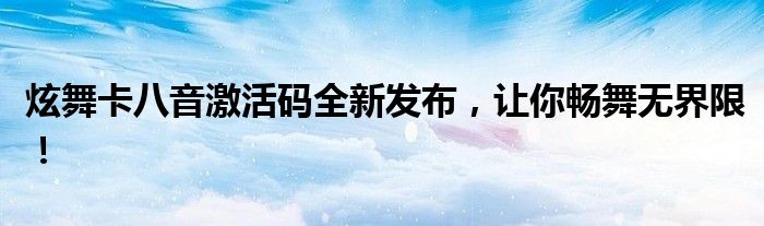 炫舞卡八音激活码全新发布,让你畅舞无界限!