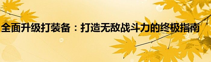 全面升级打装备:打造无敌战斗力的终极指南