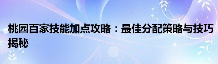 桃园百家技能加点攻略:最佳分配策略与技巧揭秘