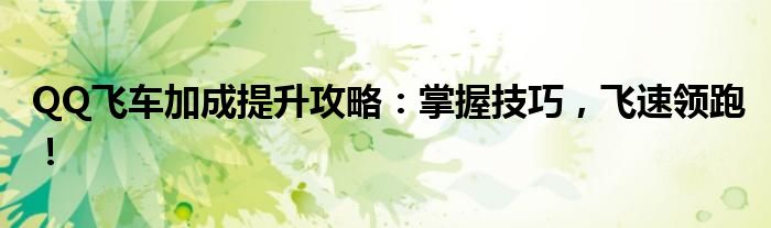 QQ飞车加成提升攻略:掌握技巧,飞速领跑!