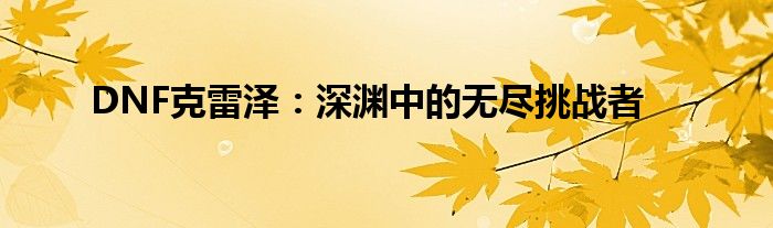 DNF克雷泽:深渊中的无尽挑战者