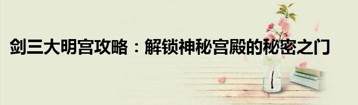 剑三大明宫攻略:解锁神秘宫殿的秘密之门