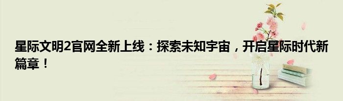欢迎来到星际文明2官网!我们非常高兴为您带来最新消息和体验。星际文明2是一款以太空科幻为主题的多人在线游戏,现在迎来了全新的篇章。让我们一起开启星际时代的新旅程!