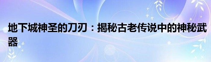 地下城神圣的刀刃:揭秘古老传说中的神秘武器