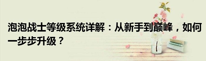 泡泡战士等级系统详解:从新手到巅峰,如何一步步升级?
