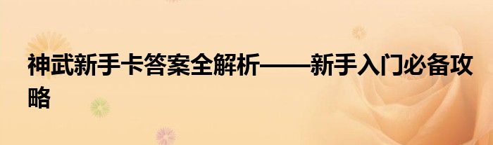 本文旨在为新手玩家提供神武新手卡的答案解析,帮助新手玩家更好地理解和掌握游戏中的各种功能和特权。
