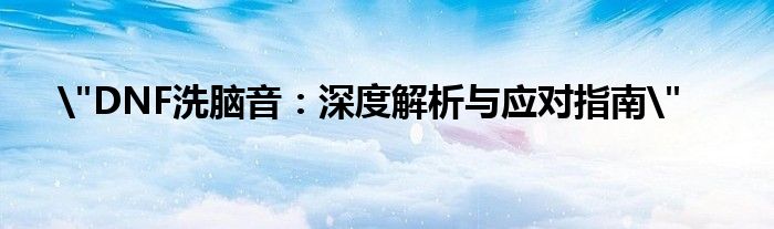本文将围绕“DNF洗脑音”这一主题展开深度解析与应对指南。我们会深入探讨什么是“DNF洗脑音”,为什么它能够吸引人们的注意力并可能引发一定的问题。此外,我们将提出一些建议,帮助玩家们正确对待这种现象,避免其带来的负面影响。