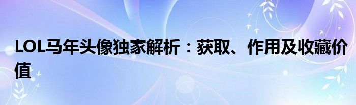 LOL马年头像作为具有特殊意义和限定性的游戏头像,备受玩家喜爱。本文为大家介绍了LOL马年头像的获取方式、作用以及收藏价值,希望能对广大玩家有所帮助。如果你是一个热爱LOL的玩家,不妨收集一个独特的马年头像,展示你的个性和收藏价值。