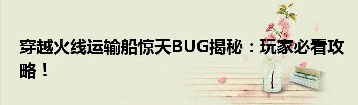 总之,穿越火线运输船BUG是众多玩家共同面临的问题。希望通过本文的介绍,大家能对这一问题有更深入的了解,并学会有效的解决方法。让我们共同期待游戏官方的修复,享受更顺畅的游戏体验!