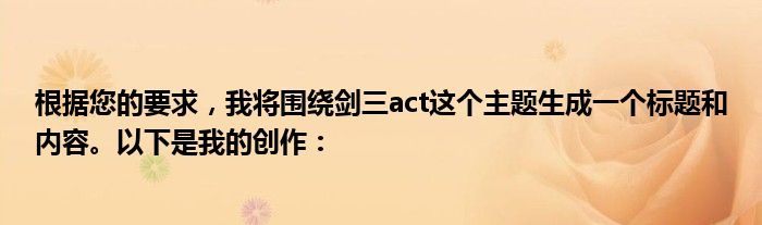 根据您的要求,我将围绕剑三act这个主题生成一个标题和内容。以下是我的创作: