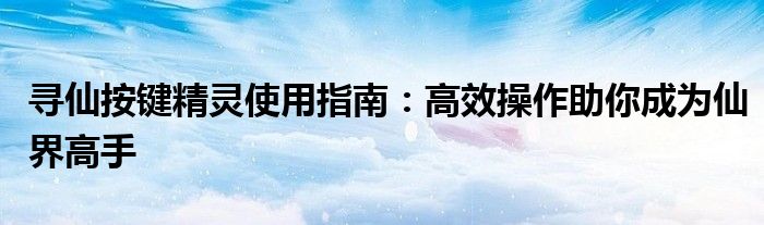 寻仙按键精灵使用指南:高效操作助你成为仙界高手