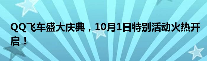 好消息!我们即将迎来一个超级盛大的庆典活动,而这次的主角就是我们深爱的QQ飞车!10月1日,一场别开生面的活动即将火热开启,所有热爱飞车的玩家们,赶快准备好,一起加入这场狂欢吧!