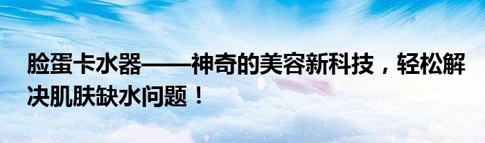 近年来,随着科技的不断进步,人们对于肌肤保养的需求也在逐渐提升。如今,一种全新的美容神器——“脸蛋卡水器”应运而生,以其高效解决肌肤缺水问题的独特魅力,成为了众多爱美人士的新宠。