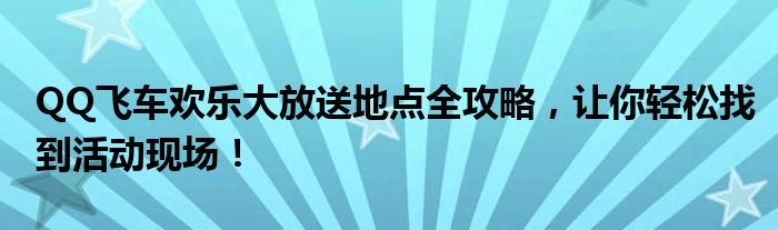 如果你正在寻找QQ飞车欢乐大放送的活动地点,那么你来对地方了。本文将为你提供关于QQ飞车欢乐大放送地点的全面攻略,让你轻松找到活动现场,尽情享受游戏的欢乐。