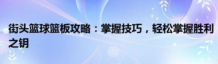 街头篮球篮板攻略:掌握技巧,轻松掌握胜利之钥