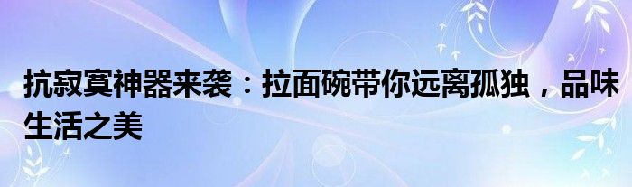 抗寂寞神器来袭:拉面碗带你远离孤独,品味生活之美