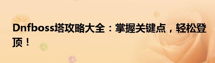 Dnfboss塔攻略大全:掌握关键点,轻松登顶!