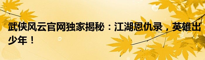 武侠风云官网独家揭秘:江湖恩仇录,英雄出少年!
