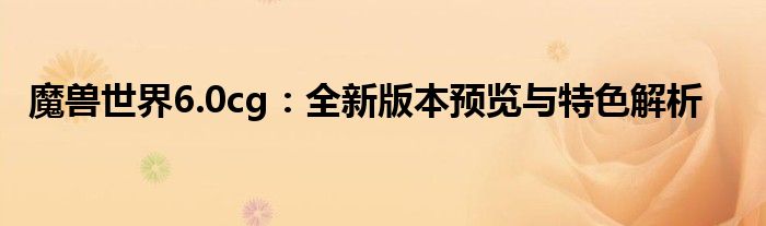魔兽世界6.0cg是魔兽世界系列游戏的一个全新版本,将会在全球范围内进行推广和运营。在这个新版本中,游戏将推出全新的游戏内容、角色、任务以及玩法等,让玩家们在游戏中获得更多的乐趣和挑战。