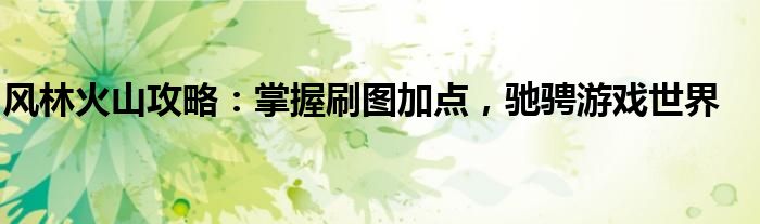 风林火山攻略:掌握刷图加点,驰骋游戏世界