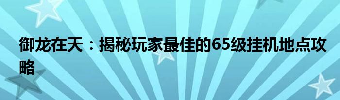 御龙在天:揭秘玩家最佳的65级挂机地点攻略