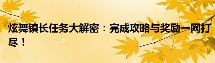 炫舞镇长任务大解密:完成攻略与奖励一网打尽!