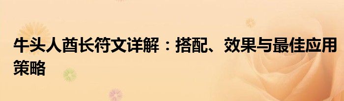 本文旨在深入探讨“牛头人酋长符文”的相关内容,包括其搭配方法、实际效果以及最佳应用策略。对于喜欢挑战和寻求新挑战性的玩家来说,掌握牛头人酋长符文的使用技巧将大大提升游戏体验。