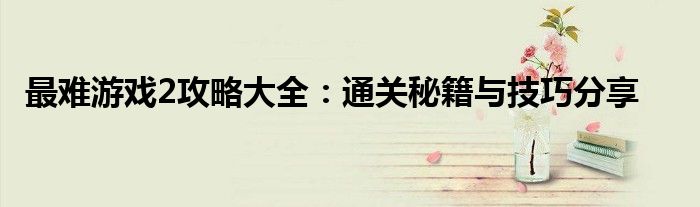 最难游戏2攻略大全:通关秘籍与技巧分享