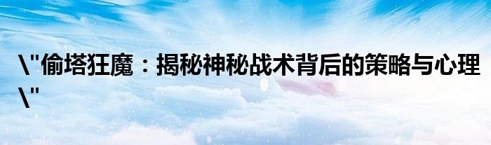 本文将深入探讨被称为“偷塔狂魔”的战术现象,揭示其背后的策略和心理。我们将从多个角度剖析这种战术的来源,以及其在游戏世界和现实生活中的影响和应对策略。