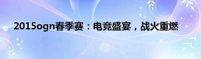 2015ogn春季赛:电竞盛宴,战火重燃