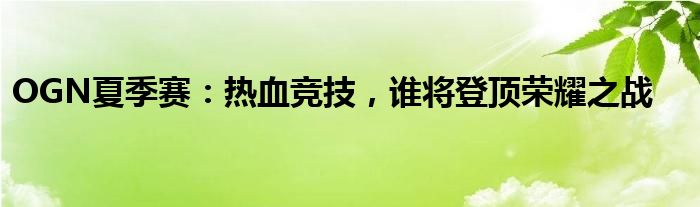 OGN夏季赛:热血竞技,谁将登顶荣耀之战