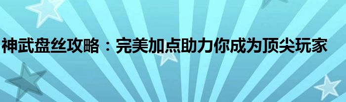 神武盘丝攻略:完美加点助力你成为顶尖玩家