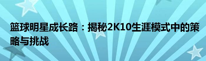篮球明星成长路:揭秘2K10生涯模式中的策略与挑战