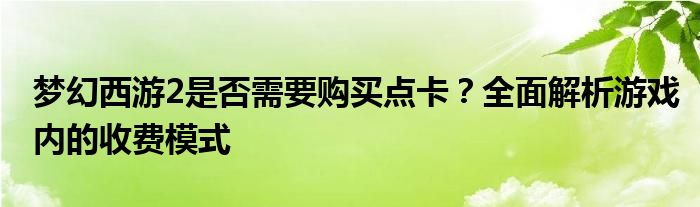 梦幻西游2是否需要购买点卡?全面解析游戏内的收费模式