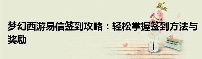 梦幻西游易信签到是游戏中一个重要的日常活动,玩家们可以通过签到获得丰厚的奖励。本文将为大家介绍如何轻松掌握梦幻西游易信签到的方法和奖励。