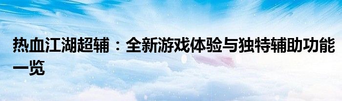 《热血江湖超辅》是一款深受玩家喜爱的游戏辅助工具,它为玩家带来了全新的游戏体验与众多独特功能。本文将为大家详细介绍这款超辅工具的各项功能及特点,帮助玩家更好地了解并享受游戏。