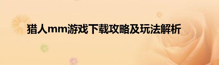本文为您介绍了猎人mm游戏的下载攻略及玩法解析。希望能够帮助您更好地了解这款游戏,祝您在游戏过程中获得愉快的体验。