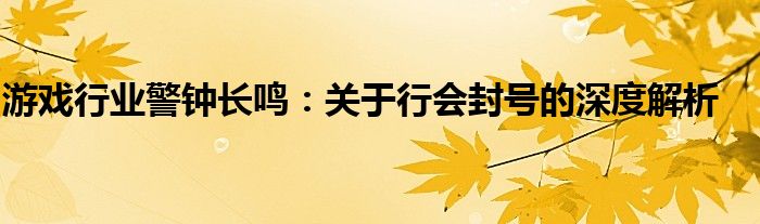 游戏行业警钟长鸣:关于行会封号的深度解析