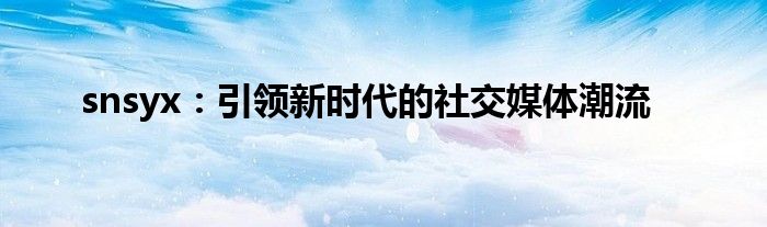 随着互联网的不断发展,社交媒体成为了人们生活中必不可少的一部分。而“snsyx”作为一个新兴的社交媒体平台,正逐渐引领着新时代的社交媒体潮流。
