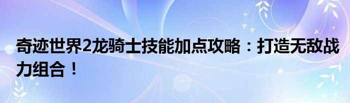 奇迹世界2龙骑士技能加点攻略:打造无敌战力组合!