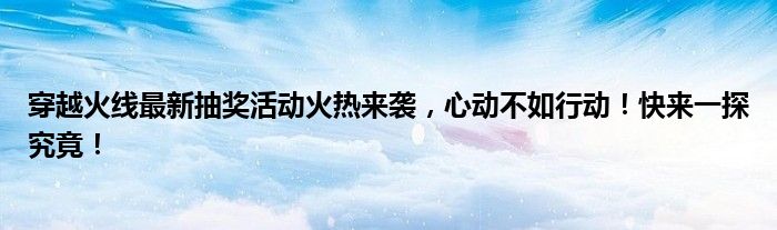 穿越火线最新抽奖活动火热来袭,心动不如行动!快来一探究竟!