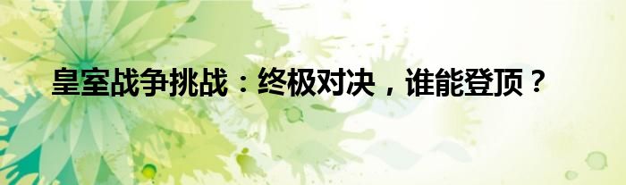 在充满战略与智慧的游戏世界中,一场关于荣耀与实力的较量正在上演。《皇室战争挑战:终极对决,谁能登顶?》正是这场精彩对决的生动写照。这是一场汇集了全球顶尖玩家的较量,他们将在皇室的战场上展开一场激烈的对抗。