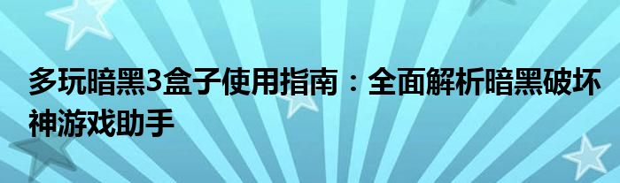 多玩暗黑3盒子使用指南:全面解析暗黑破坏神游戏助手