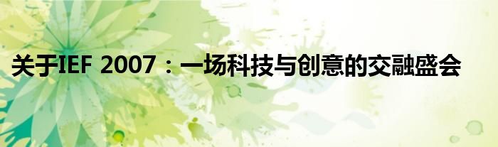 关于IEF 2007,这是科技与创意界的一大盛事。作为当年的科技盛会,"ief2007"的主题聚焦于展示最新的科技进展和创新思维。在这个平台上,全球各地的科技爱好者和专业人士汇聚一堂,共同探讨和分享最前沿的科技趋势和创新实践。