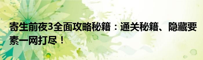 本文为你提供了《寄生前夜3》的全面攻略秘籍,包括角色选择与技能提升、武器选择与装备搭配、任务攻略与隐藏要素、战斗技巧与生存策略、多人协作与联机攻略以及常见问题解答与BUG修复。希望这份攻略能帮助你轻松通关游戏,发现更多的隐藏要素和惊喜。
