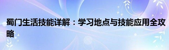 蜀门生活技能详解:学习地点与技能应用全攻略