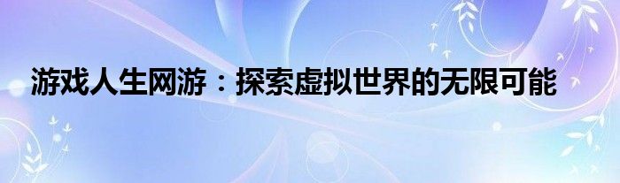 随着科技的不断发展,人们对于虚拟世界的探索越来越深入。在众多网游中,“游戏人生网游”以其独特的魅力吸引着越来越多的玩家。这款游戏不仅仅是一个简单的娱乐产品,更是一个可以让人们释放想象力、体验无限可能的虚拟世界。