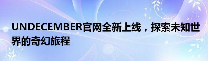 UNDECEMBER官网全新上线,探索未知世界的奇幻旅程